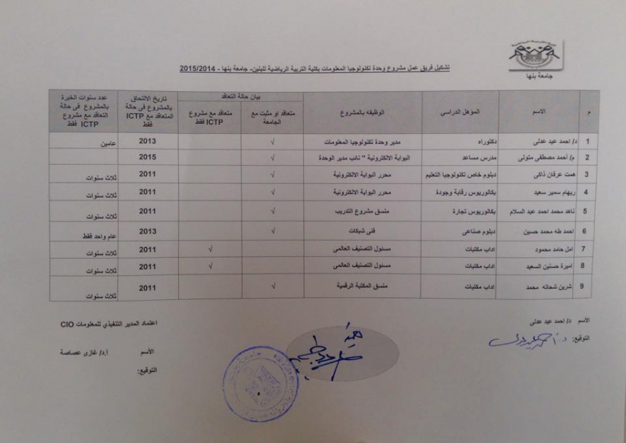 تهنئ وحده تكنولوجيا المعلومات بالكلية د/ احمد مصطفى متولى لتولية نائب مدير وحده تكنولوجيا المعلومات