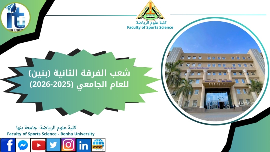 لمعرفة شعب الفرقة الثانية بنين الفصل الدراسي الاول للعام الجامعى 2026/2025م اضغط هنا
